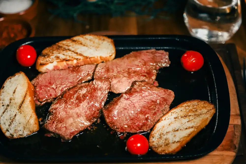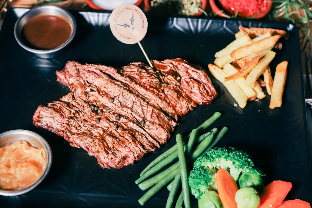 Aloyau Flank Steak 280g: Juicy flank steak cooked to perfection.