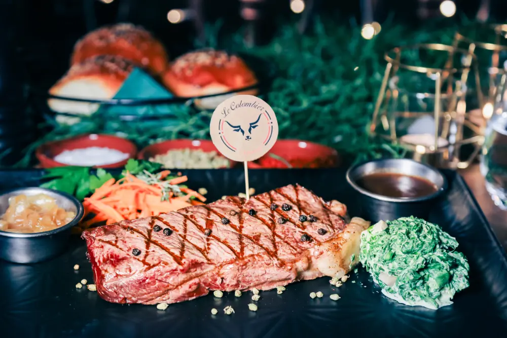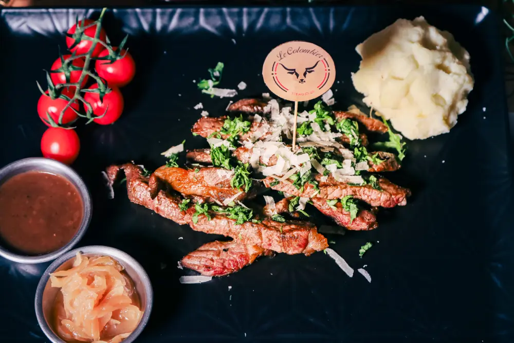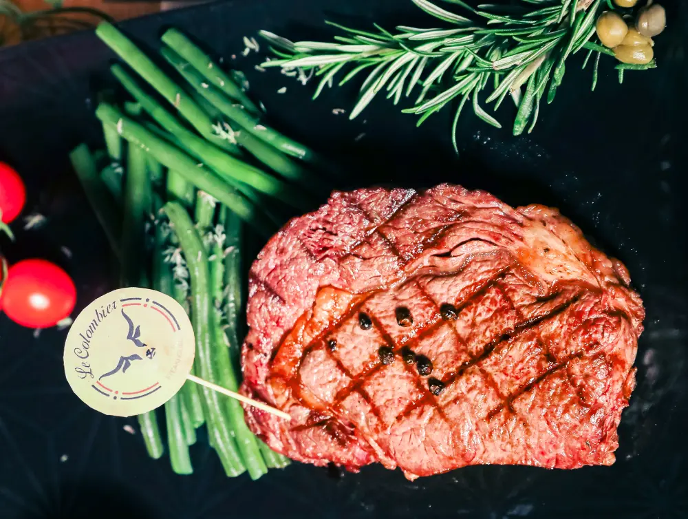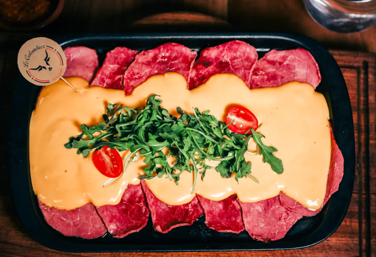 Special Lokoum at Le Colombier: 1 person 45€, 2 people 90€. Thin slices of beef tenderloin cooked in butter.