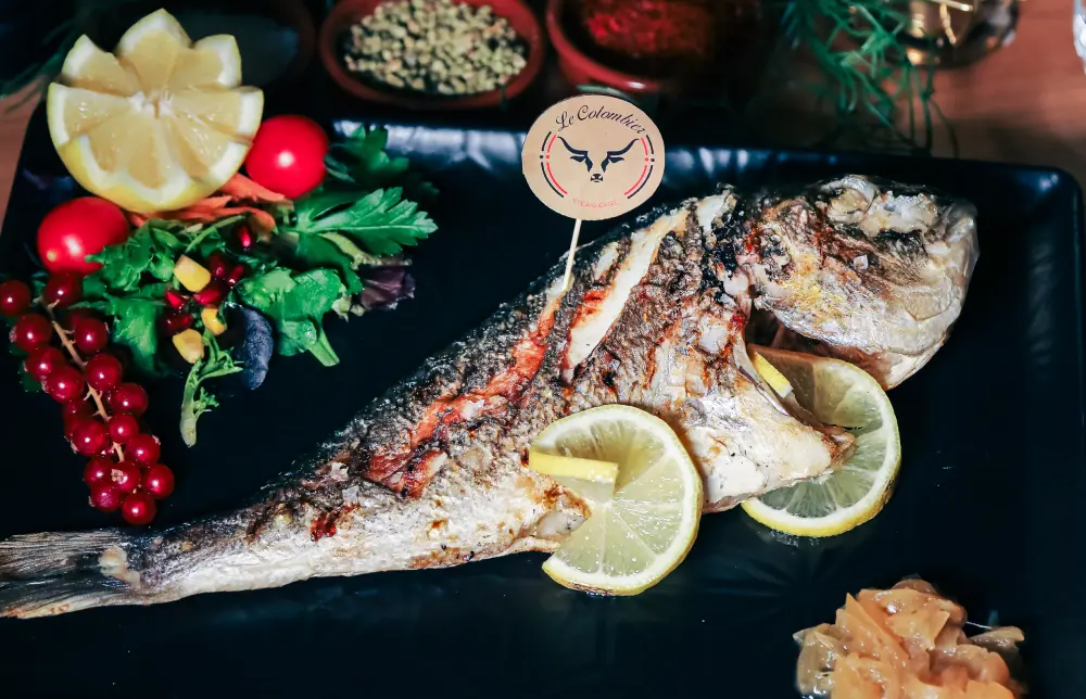 Colombier Chicken Marinated with Saffron: Tender chicken marinated with saffron.