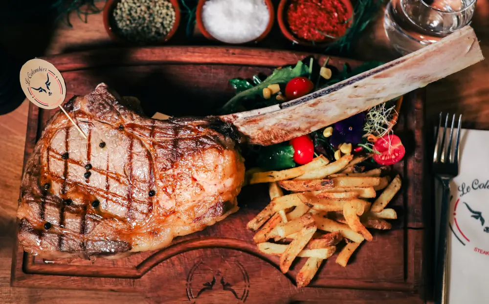Tomahawk 1.25kg Table-Cut for 2 people: Beef rib with the bone, cut at the table.