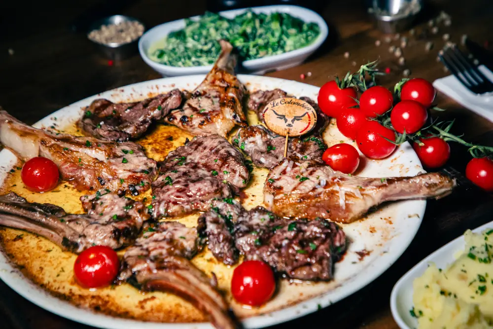 Chef’s Plate: 5 pieces of lamb chops and 350g of beef rib-eye for 2 people, cooked in butter.